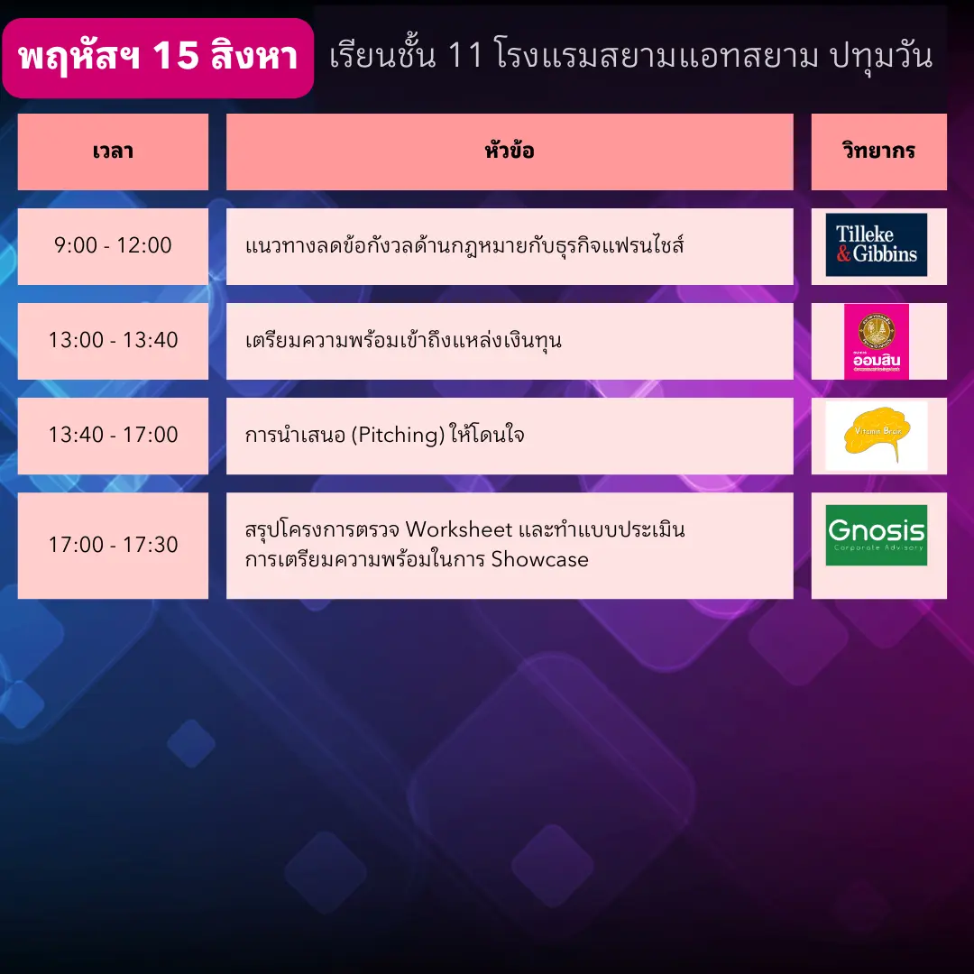- ได้รับเครื่องมือและแนวทางในการพัฒนาธุรกิจแฟรนไชส์ของคุณ