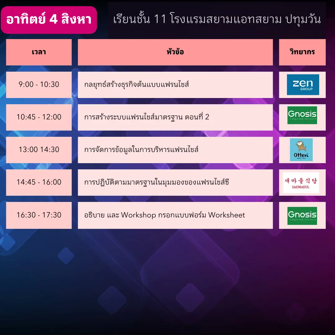 - หลักการสร้างระบบมาตรฐานแฟรนไชส์พร้อมขยายทั้งในและต่างประเทศ (วิธีของ Gnosis)