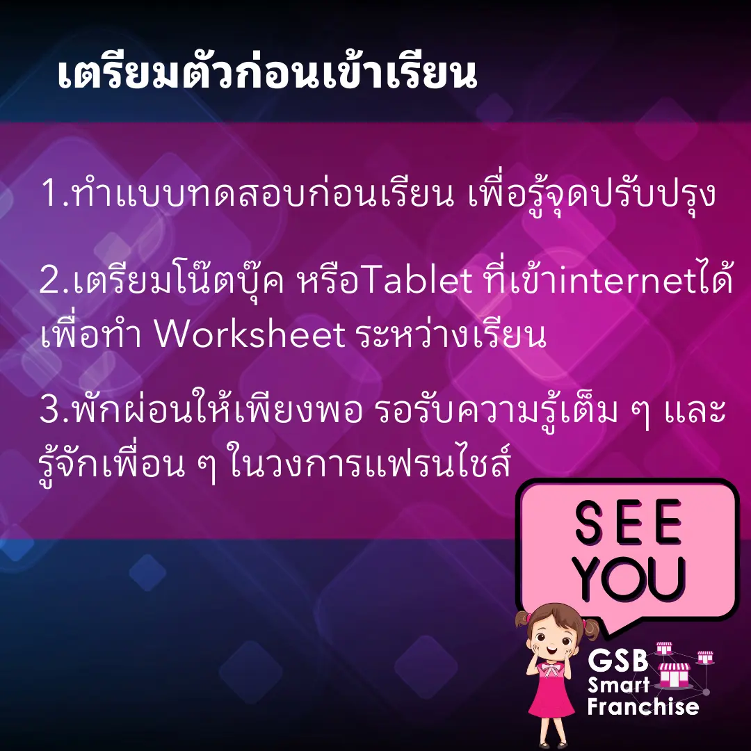 การันตีจากหลักสูตร GSB Franchise Standard ในปี 2022 และ 2023 ซึ่งในปีที่ 3 หรือ GSF24 เนื้อหาหลักสูตรจะเข้มข้นกว่าเดิม เข้าถึงใกล้ชิดกว่าเดิม จัดเต็มกว่าเดิม